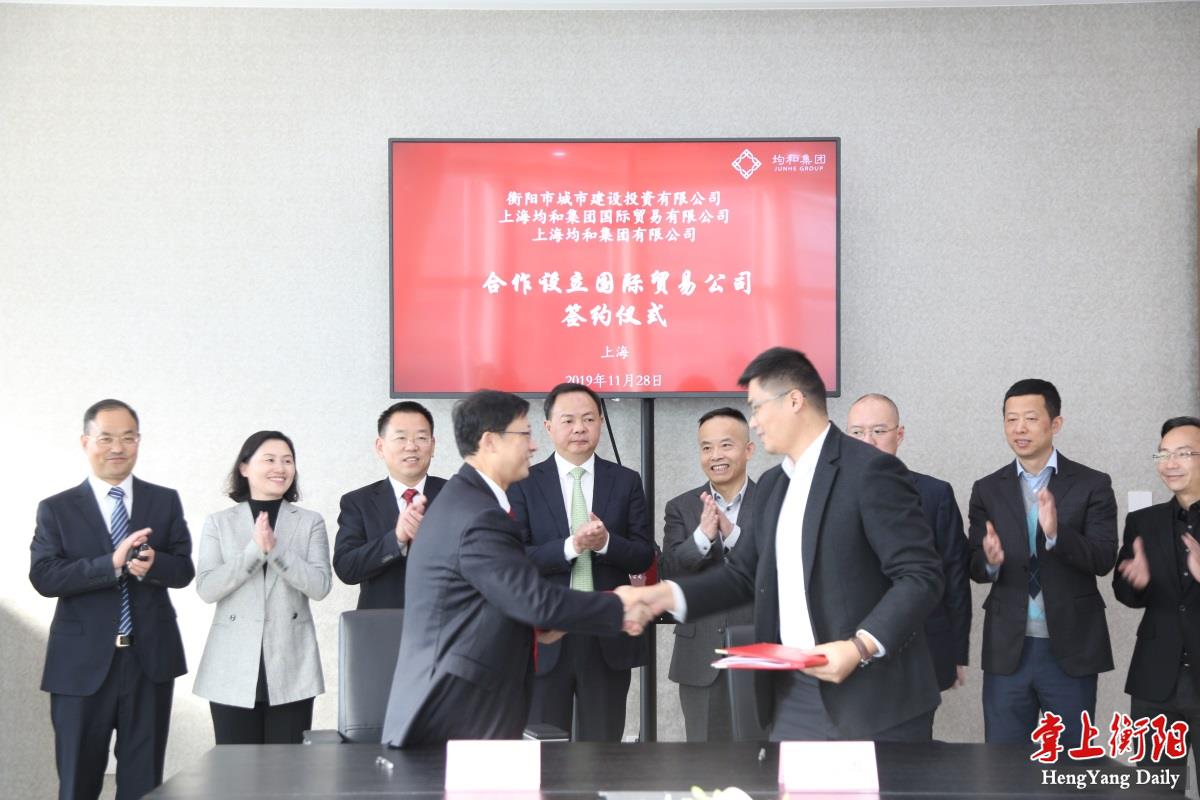 11月28日,衡陽市城建投與上海均和集團(tuán)國際貿(mào)易有限公司簽訂協(xié)議,合作設(shè)立國際貿(mào)易公司,衡陽市市委書記鄭建新、上海均和集團(tuán)總裁肖傳甫見證簽約。